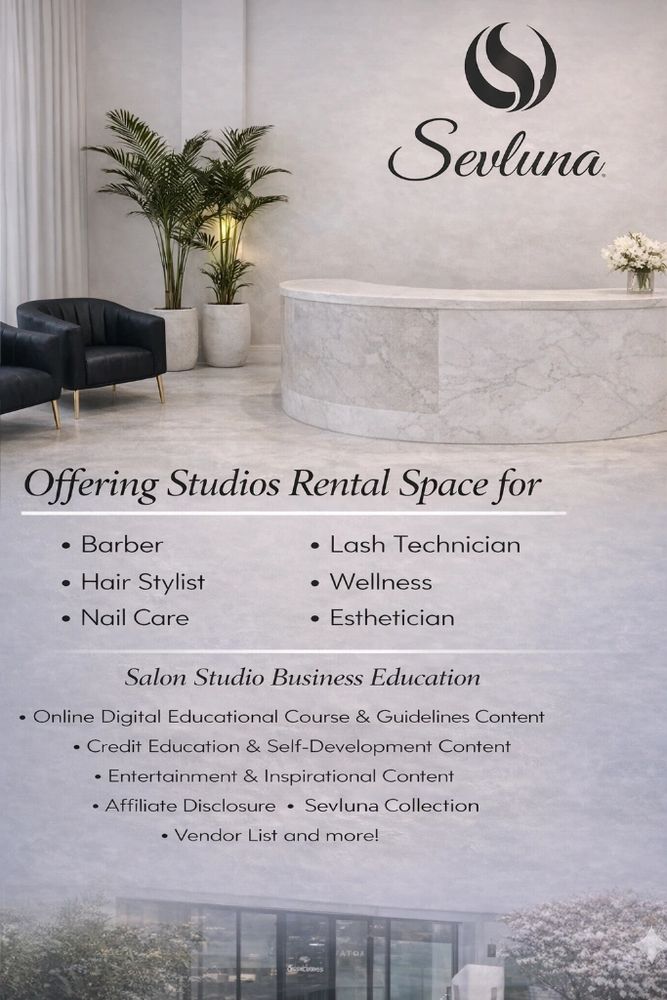 Sevluna Studios offers private salon rental studios designed for beauty professionals and educators. Our flexible, luxury spaces gives elegant experience while growing your business independently in a professional setting.